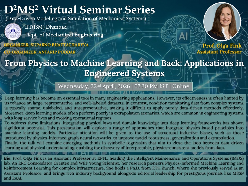 D²MS² is a monthly virtual seminar series hosted by the Department of Mechanical Engineering, IIT (ISM) Dhanbad.